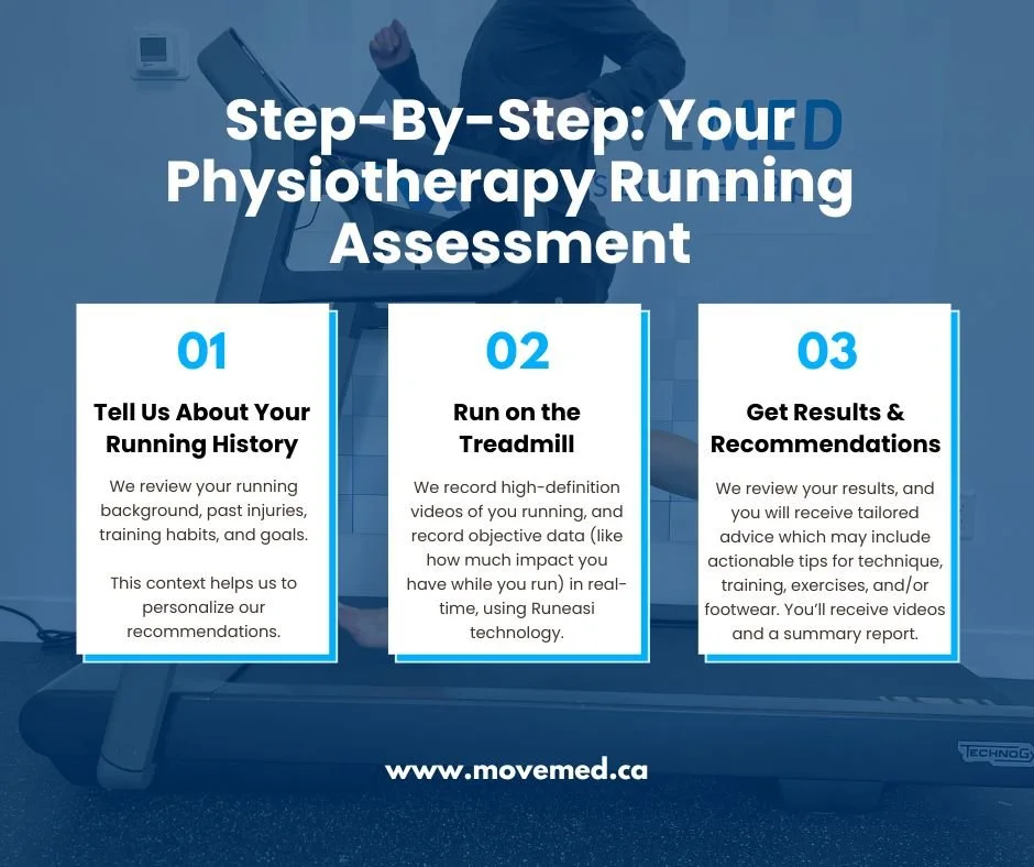 At MoveMed Physiotherapy, we provide a comprehensive, individualized approach to treating running injuries. From a detailed review of your injury and running history to a thorough initial assessment where we can diagnose the injury, we design a personalized treatment plan tailored to your needs, so you can recover confidently and get back to running stronger.